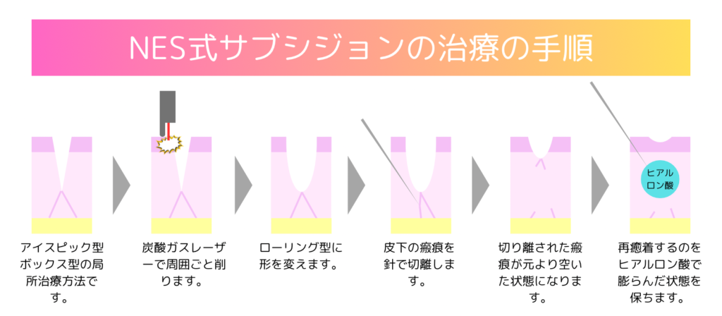 これらのタイプの場合は、サブシジョンで十分な改善が期待できません。レーザー治療やTCAクロスなど、他の治療が適していることがあります。