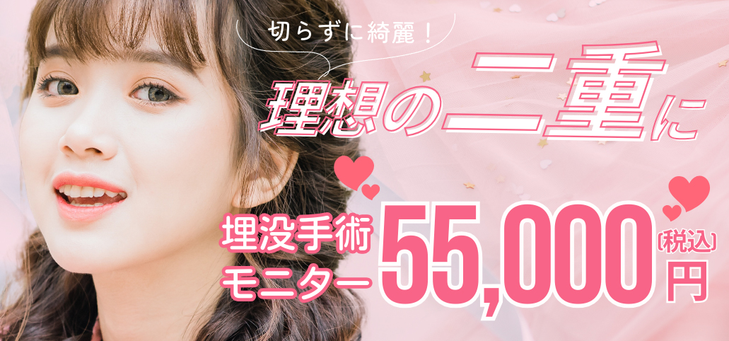 腫れぼったいまぶたの方、3回以上埋没しても取れてしまう方に向いている治療です。 希望の高さでまぶたの皮膚を切って縫うことで二重を作ることができます。 皮膚を切開するため、ダウンタイムが増えますが二重のラインが取れてしまうことはありません。