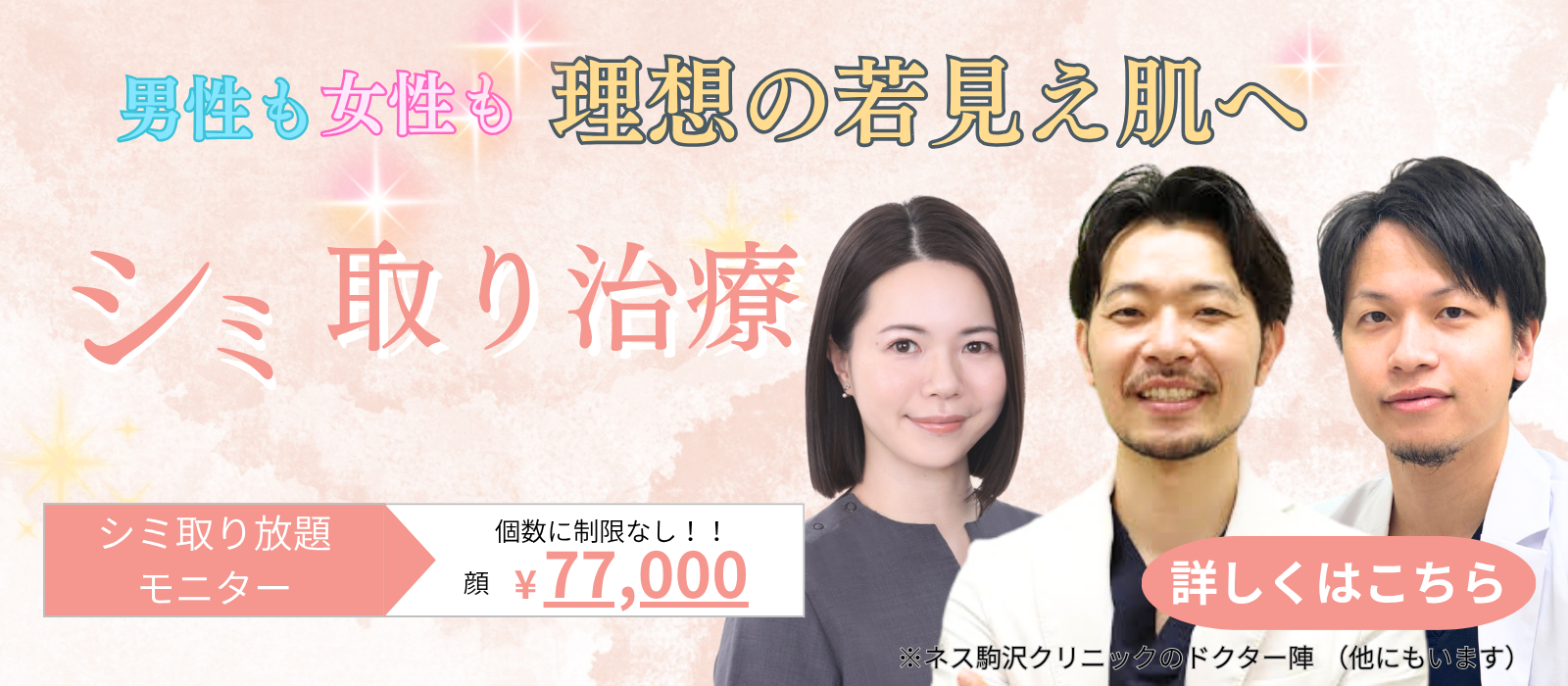 世田谷の駒沢(上馬)にあるネス駒沢クリニック 形成外科・美容ではモニター様を通常価格よりお得に募集しております。