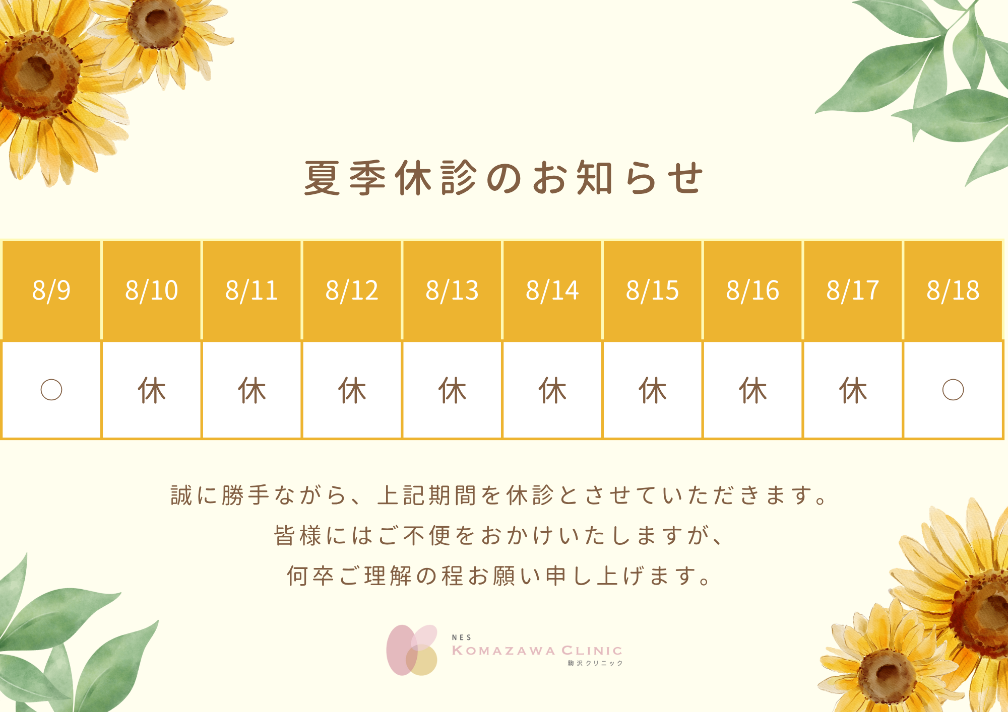 夏季休診のお知らせ